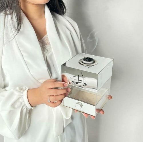 مبخره بالاسم اكريلكمباخر بالاسم للبخور مزاج ما يفهمه غير عُشاقه.تفاصيل المنتج.مصنوعة من الأكريليك.نصنعه بكل حب باللون الفضي المناسب لكل الأذواق.نصنعه خصيصا لك بالحرف و الاسم حسب الطلب.