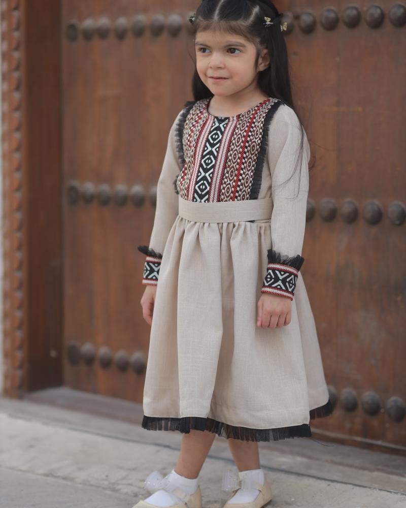 فستان يوم التأسيس يعكس روح الأصالة والتراث السعودي، مستوحى من الملابس التقليدية التي ارتداها الأجداد في مختلف مناطق المملكة. يتميز الفستان بالتفاصيل الزخرفية التراثية والألوان المستوحاة من الهوية الوطنية، ما يجسد الفخر بالتراث السعودي في يوم التأسيس.