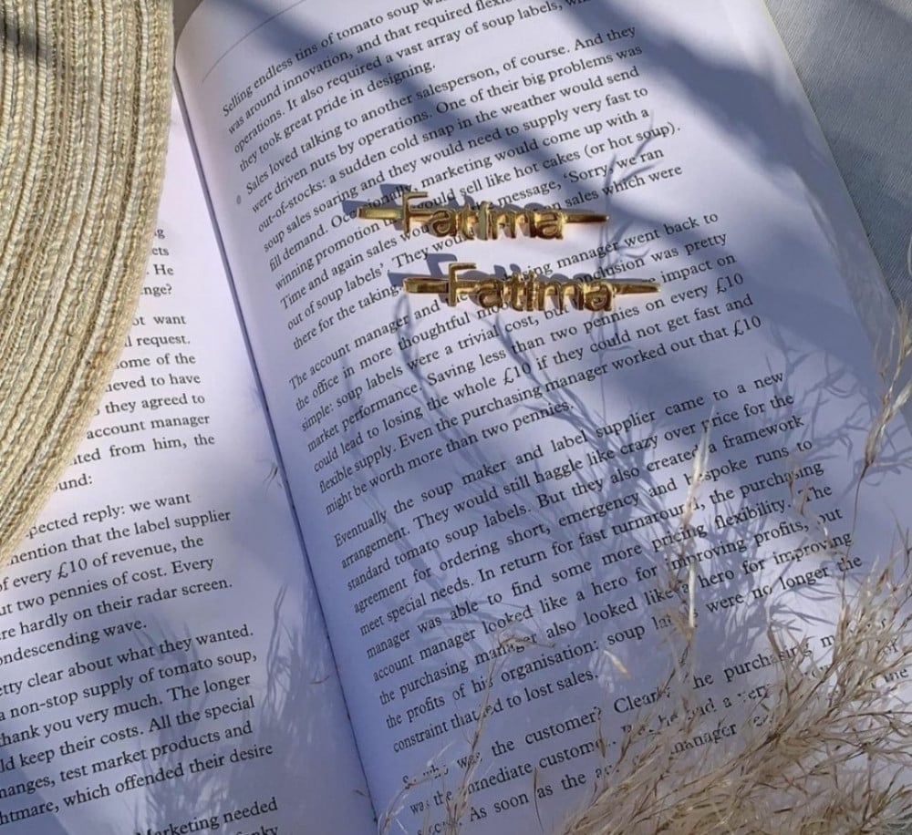 مشبك الشعر بالاسم90 مشبك بالاسم مطلي ذهبيصمم بكل حب لاناقة اطفالكمتفاصيل الطلبامكانيه كتابه الاسم حسب الطلبمن انحاس عالي الجودهطلاء ذهب عيار 21 قيراطمتوفر باللونين ذهبي او فضيياتيكم بتغليف شيك وجميل من رالا